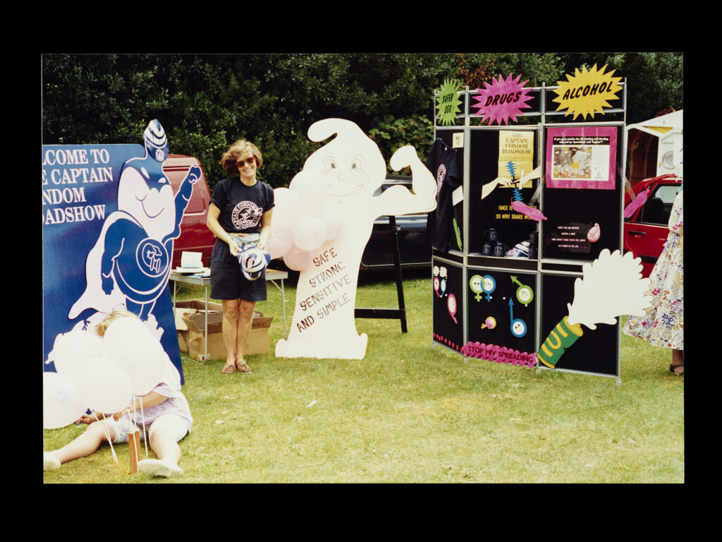 In other photos you can see the Captain Condom roadshow, with the Island’s Director of Public Health, and district HIV Prevention Coordinator. These show display stands which included information on the topics of safer sex, drugs, and alcohol. These photos demonstrate the way the campaign actively reached out to educate the community and reduce stigma.