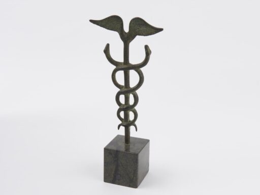 A common emblem for medicine depicts one or two snakes coiling up a staff. This symbol, often referred to as a ‘caduceus’, has been frequently used as a pharmacy or healthcare company crest. However, the term ‘caduceus’ has a distinct meaning and historically has been confused with the real first medical symbol: the ‘Rod of Asclepius’.