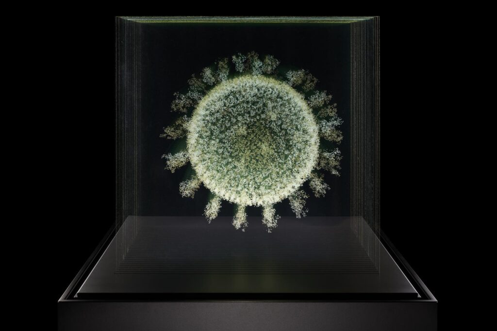 In the early days of the pandemic, Palmer turned her attention to representing the microscopic virus. With 2020: The Sphere that Changed the World, Palmer magnified the virus, turning it into a visible ‘glowing presence’.