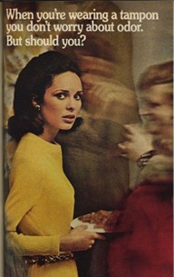 Playtex launched deodorant tampons in 1971, even though menstrual blood doesn’t have an odour until it is exposed to the air (which doesn’t happen until a tampon is removed.) These were advertised as having a ‘fresh, delicate’ floral scent that would help conceal menstruation. Deodorant tampons joined other vaginal deodorants introduced to the UK consumer market, including sprays, powers, and douches.