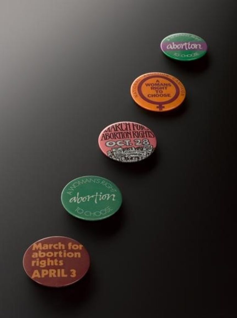 In the 1970s and 1980s, several amendments were proposed that sought to restrict access to abortion. The National Abortion Campaign was set up in 1975 to defend the Abortion Act from such attempts. The badges below are from the National Abortion Campaign, and many feature the phrase ‘A Woman’s Right To Choose.’