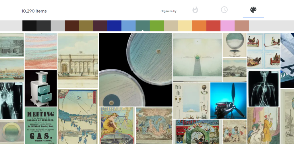 You can look at more of the objects digitised in the project and view the objects sorted by popularity, in a timeline and even organised by colour. The collection of images is also organised by category and theme, with varied categories such as extreme sport, railway, invention, and humour.