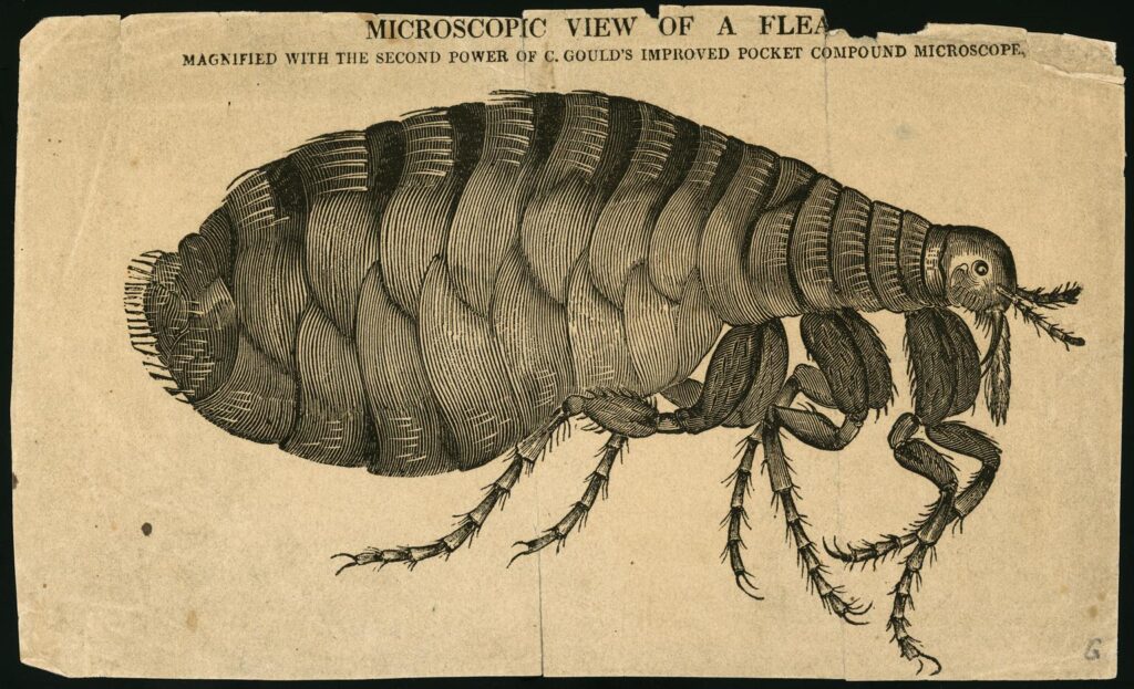 Fleas were a common subject of microscopic drawings, with the most notable created by Robert Hooke in his 17th century work, Micrographia. It was a seminal piece in the relationship between art and science, containing illustrations of life through a microscope.