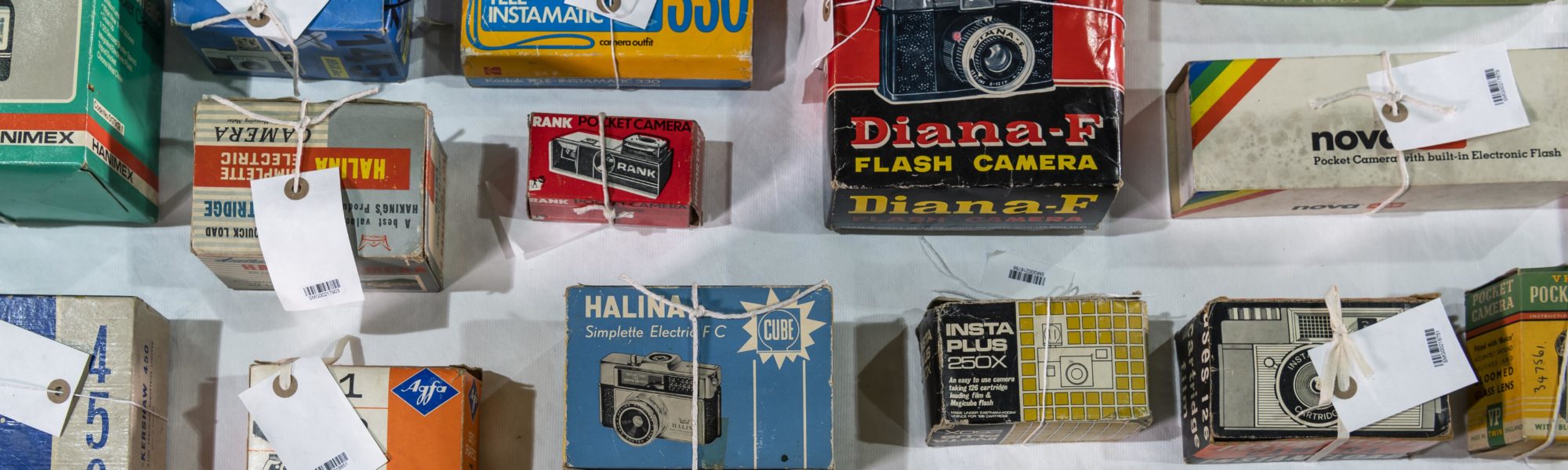 We also looked at whether the cameras were in their original packaging. A wide range of cameras with their original boxes and packaging will remain in the collection, helping illustrate the evolution of branding and marketing cameras. One particular highlight is a selection of Polaroid cameras encased in rainbow packaging.