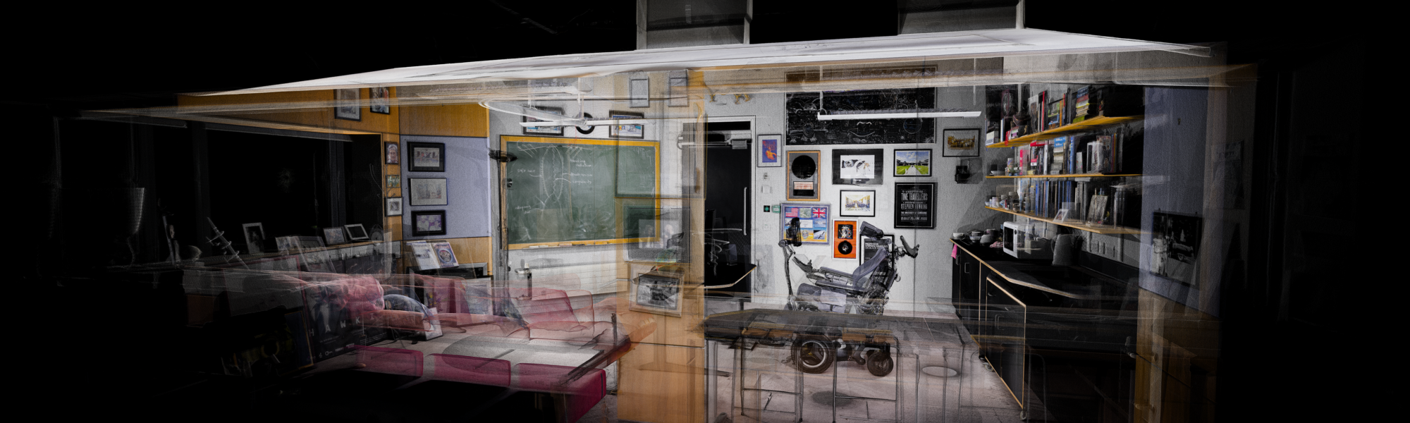 Soon you will be able to move from the office kitchen, above which some of Hawking’s books were kept, to the windowsills which were adorned with many of the awards Hawking received throughout his life.